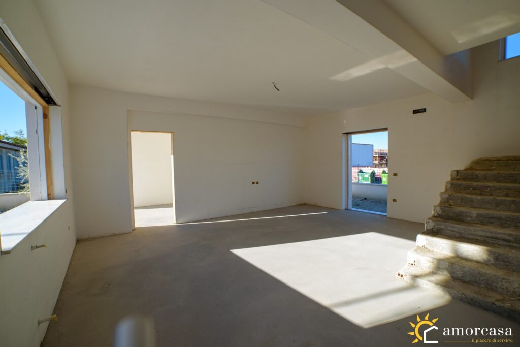 Entrando nella villa, ci si trova accolti in un luminoso open space di oltre 40 mq, un ambiente ampio e versatile, ideale per ospitare momenti di relax o per riunire la famiglia. Le grandi finestre lasciano entrare una luce calda e naturale, creando una sensazione di continuità tra l’interno e il verde esterno. Dal soggiorno si accede facilmente al giardino privato, uno spazio dove puoi vivere momenti di serenità, organizzare cene all’aperto o semplicemente rilassarti con la famiglia.