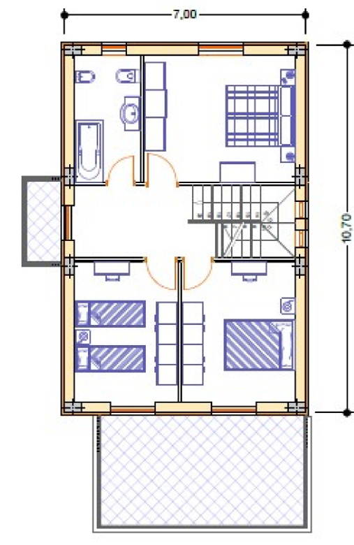 Il piano superiore offre 75 mq di puro comfort. Le tre camere da letto, di cui due di oltre 12 mq e la spaziosa camera matrimoniale di 16 mq, sono pensate per offrire a ogni membro della famiglia il massimo della privacy e della comodità. Le ampie finestre garantiscono una luminosità costante in ogni momento della giornata.